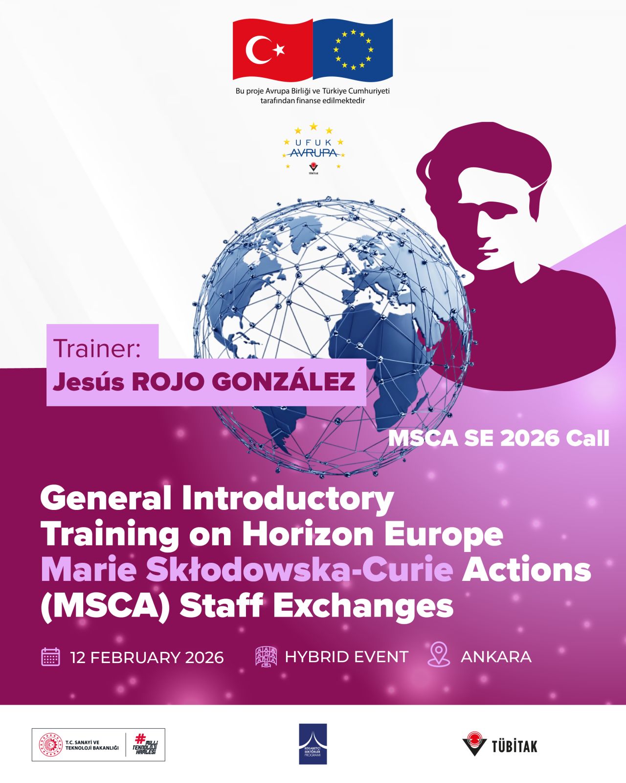 12 Şubat 2026 tarihinde Ankara’da hibrit formatta, Ufuk Avrupa’da Türkiye Teknik Destek Projesi kapsamında MSCA Staff Exchanges 2026 Çağrısına Yönelik Genel Bilgilendirme Eğitimi düzenlenecektir.